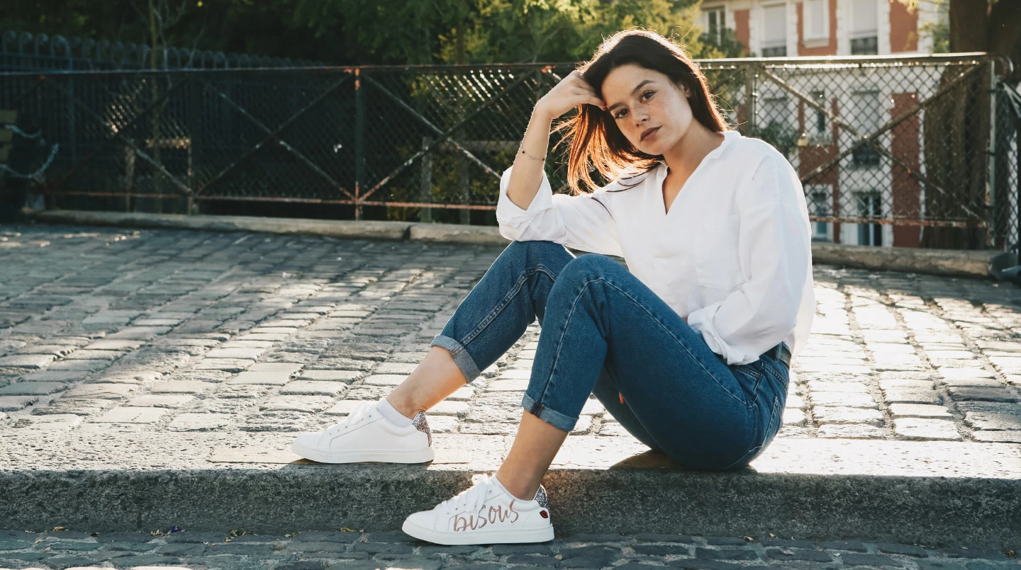 Bons baisers de Paname Baskets en cuir Mini Simone Monsieur Madame Chatouille Couleur BLANC