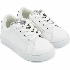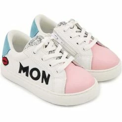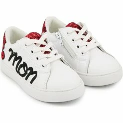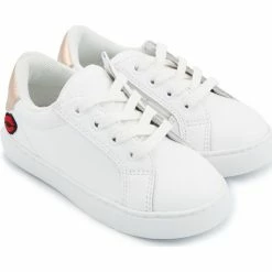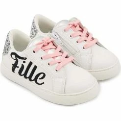 Bons baisers de Paname Baskets en cuir Mini Simone Hello Kitty Glitter Rose Couleur BLANC