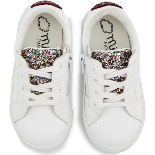 La sneaker la plus cute des tous petits, c’est Mini Simone ! On l’enfile pour faire ses premières balades sur le bitume avec style et impertinence. Des glitters argent sur la languette, et Ă l’arrière bouche qui tire la langue ! De quoi devenir la star de la cour de rĂ©crĂ© !