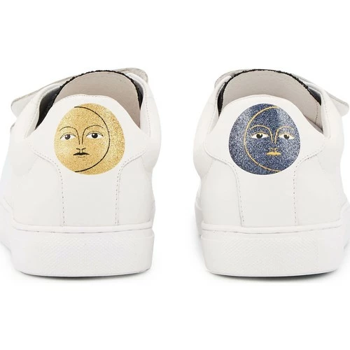 L’intemporel modèle Ă scratch Edith se porte comme un grigri le temps d’une collaboration avec l’artiste et tarologue Caroline Drogo. Sur les scratch sont imprimĂ©s les mots >, et Ă l’arrière des astres or et bleu nuit. Alors faites un vĹ“ux, pensez-y très fort en enfilant vos sneakers et avancez… Chaque jour sera un pas de plus vers votre souhait !