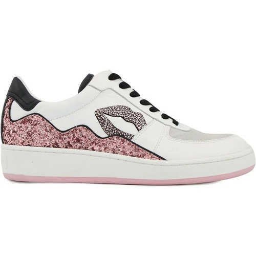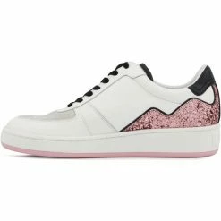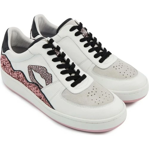 Voici venue Loulou ! Sneaker tout-terrain ultra confort avec sa semelle Ă©paisse, mais qui n’a pas oubliĂ© d’ĂŞtre mode avec son design pointu. Tendance et Ă la cool, chill et trendy, qui dit mieux ? Des dĂ©tails noirs qui se dĂ©tachent sur son cuir blanc et de ses paillettes rose, et une bouche en cuir craquelĂ© rose gold qui ajoute une touche de pep’s. Show must go on.