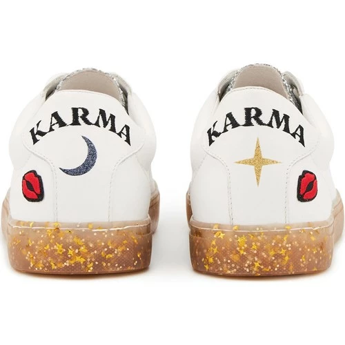 Notre modèle de sneakers Simone se couvre de paillettes argentĂ©es Ă l’occasion de la collaboration avec Caroline Drogo. Ă€ l’arrière, le mot karma d’affiche en lettres brodĂ©es et invite chacune Ă devenir la meilleure version de soi-mĂŞme. Car soigner son karma, c’est avancer dans la bonne direction, en faisant les meilleurs choix possibles… et toujours avec une touche de paillettes !