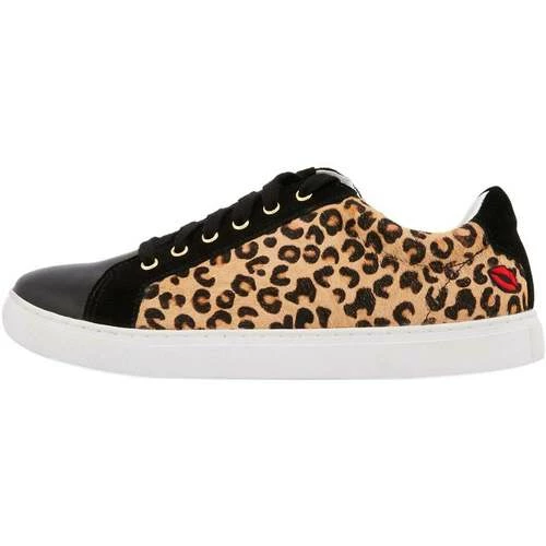 Simone, c’est la base de la base. La sneaker Ă lacets qui ne vous laissera jamais tomber. Un peu comme Simone Veil ou Simone de Beauvoir, quoi. Simples, polyvalentes et efficaces, on les enfile pour chiller comme pour aller danser. Pas le temps de la jouer discrète, cette paire s’impose avec ses empeignes latĂ©rales Ă imprimĂ© lĂ©opard au toucher tout doux, magnifiĂ©e par des bordures de cuir noir veloutĂ©. Avec ses Ĺ“illets dorĂ©s et la bouche rouge signature aux talons, elle la joue bling et surtout sans complexe.