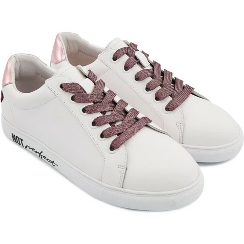 Simone, c’est la base de la base. La sneaker Ă lacets qui ne vous laissera jamais tomber. Un peu comme Simone Veil ou Simone de Beauvoir, quoi. Simples, polyvalentes et efficaces, on les enfile pour chiller comme pour aller danser. Ici, le message fort « Not perfect and it’s Okay » en mettra plus d’une Ă l’aise dans ses baskets grâce Ă sa touche glamour des chevillères or rosĂ©es.