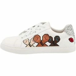 Simone, c’est la base de la base. La sneaker à lacets qui ne vous laissera jamais tomber. Un peu comme Simone Veil ou Simone de Beauvoir, quoi. Simples, polyvalentes et efficaces, on les enfile pour chiller comme pour aller danser. Avec son inscription Sororité façon graffiti d’un côté et son motif poings levés de l’autre, c’est la basket qui nous unit toutes, pour un monde meilleur (et à glitters).