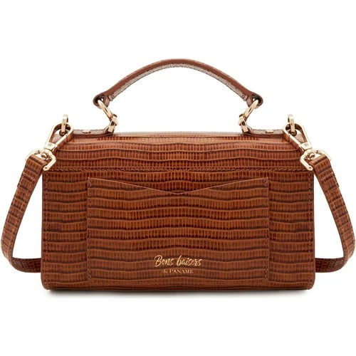 En version mini, le sac cartable Sealed with a Kiss est Ă croquer ! On aime sa bandoulière pour l’enfiler Ă la va-vite et sa poignĂ©e pour le porter Ă la main, un petit snobisme qui le vaut bien. Avec sa forme lĂ©gèrement rectangulaire, il permet d’emporter avec soi l’essentiel et mĂŞme un peu plus : des clĂ©s, un porte-monnaie et un rouge Ă lèvre pour rester on fleek entre deux rendez-vous. On aime son cuir cognac embossĂ© façon lĂ©zard qui ajoute une touche vintage Ă votre look, juste sĂ©duisante comme il faut. – Dimension : 12 x 20 x 8,5 cm