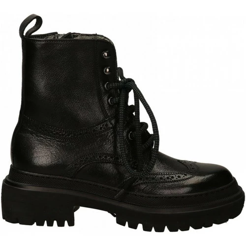 Anfibio in pelle con zip sul lato interno della tomaia e chiusura con lacci. Suola in gomma di 4 cm sul tallone e di 2 cm in punta. Gambale di 16 cm nel numero 36.
