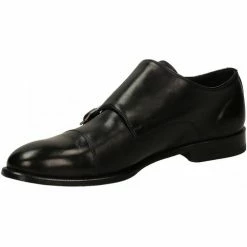 Elegante calzatura in pelle con due fibbie metalliche frontali.