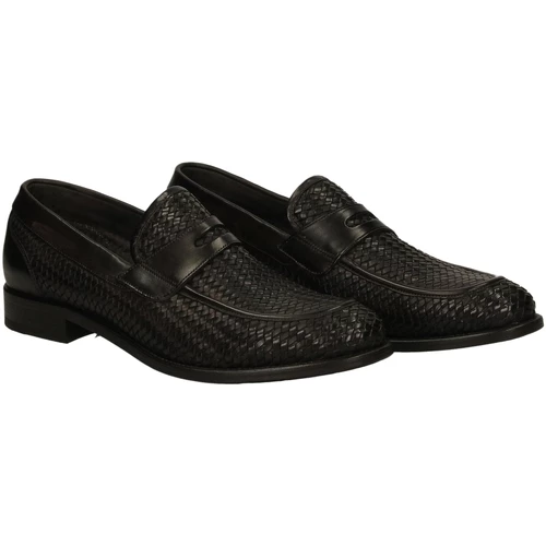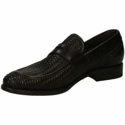 Mocassino con tomaia in pelle intrecciata, interno in pelle e fondo in cuoio.