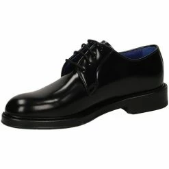 Scarpa stringata da donna in pelle nera con tacco di 2,5 cm. Interno e fondo in pelle.