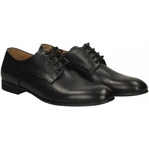 Scarpa stringata con tomaia in pelle lavorata.